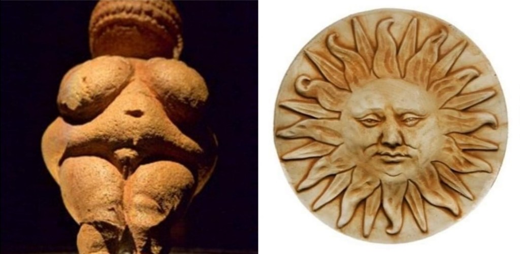 Le Dieu et la Déesse sont les premières divinités à avoir été vénérées par les humains, au Paléolithique, la plus ancienne période de la Préhistoire. C’est à eux que les premiers humains se sont adressés durant leurs premiers pas en ce monde, dans leur vie quotidienne… ils ont bénéficié d’un rapport privilégié avec leurs Créateurs… Les hommes et les femmes des premiers temps se tournaient vers la Déesse pour les problèmes affectifs, pour tout ce qui touchait à l’amour, à l’amour entre hommes et femmes, pour les questions de sexualité, de fertilité, et autres… la Déesse était tout simplement leur mère, elle prenait soin d’eux… c’est pour cette raison qu’on l’appelle encore à notre époque « la Déesse-mère ». Les plus anciennes représentations que l’on ait retrouvé de la Déesse-mère datent d’il y a environ 25 000 ans… ce sont les plus anciennes représentations de divinités jamais retrouvées. Même si nous n’avons pas retrouvé de statuettes représentant le Dieu datant du paléolithique, nous savons que les humains de l’époque se tournaient vers lui comme l’amour de la Déesse, leur Père divin, pour la sollicitude qu’il leur accordait dans leur apprentissage de la vie, pour la force et le courage dont ils avaient besoin pour la chasse afin de se nourrir, ainsi que pour des qualités de meneur… et avec un amour paternel. Le culte du Dieu et celui de la Déesse sont toujours allés de pair depuis le paléolithique jusqu’à nos jours, et c’est pour ça que nous savons que le Dieu était présent pour nous déjà à l’aube de l’humanité comme il l’est encore à notre époque… La plus belle preuve que l’on ait de son existence, et de celle de la Déesse, c’est ce qu’ils peuvent faire pour nous. Il suffit de leur demander des dons pour en constater les effets quand on les reçoit. Le Dieu et la Déesse peuvent être sollicités pour les mêmes choses qu’à l’époque de la préhistoire encore aujourd’hui à notre époque. Même si les préoccupations des humains ne sont plus les mêmes qu’au paléolithique, le Dieu et la Déesse répondent toujours à nos attentes. Ils peuvent nous accompagner dans notre vie quotidienne, dans toutes nos démarches et entreprises. Une chose que le Dieu (et la Déesse) peut vous apporter et qu’il ne fait pas de doute que ça vient de lui, c’est de la puissance… quand on reçoit de la puissance, il n’y a pas de place au doute… tout change dans notre art et notre vie, dans tout ce que l’on fait… Toutefois, le Dieu et la Déesse n’accordent pas de la puissance à tout le monde sur simple demande… ils l’accordent à ceux qui ont des projets nobles… Dans l’optique du Dieu et de la Déesse, les plus forts doivent prendre soin des plus faibles. À grand pouvoir, grande responsabilité.