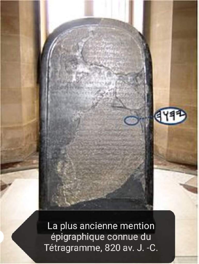 La plus ancienne mention épigraphique connue du Tétragramme est un nom théophore, c’est-à-dire « portant [le nom de] Dieu », daté de 820 av. J. -C. sur la stèle de Tel Dan.