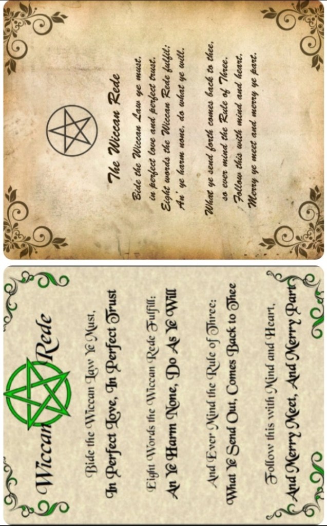 « Si nul n’est lésé, fais ce que tu veux. »(*), ou encore « Fais ce que tu veux, tant que ça ne nuit à personne. »… C’est le Credo Wiccan. C’est la seule règle que les sorciers suivent quand ils sont dans la voie du bien, la magie blanche. L’origine de cette directive vient en réalité de la seule règle que le Dieu et la Déesse avaient donné aux humains: